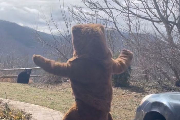 Житель Северной Каролины решил подойти к решению проблемы с медведями на своём заднем дворе более творчески: он надел костюм мультяшного медведя и каким-то образом успешно отпугнул непрошеных гостей.