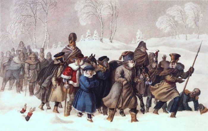 Согласно мемуарам фрейлины Марии Волковой, посетившей лагерь военнопленных в сентябре 1812 года, пленников было так много, что никто не знал, как с ними поступить. Люди голодали, мерзли, болели.![]()