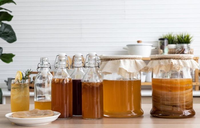 Ферментированный напиток комбуча изготавливают из листьев зеленого и черного чая, сахара, дрожжей и специальных бактерий. Для его изготовления нужно несколько дней. Продукты заливают водой и оставляют в теплом месте. В результате в банке начинают «просыпаться» полезные микроорганизмы, которые создают газированный холодный чай.