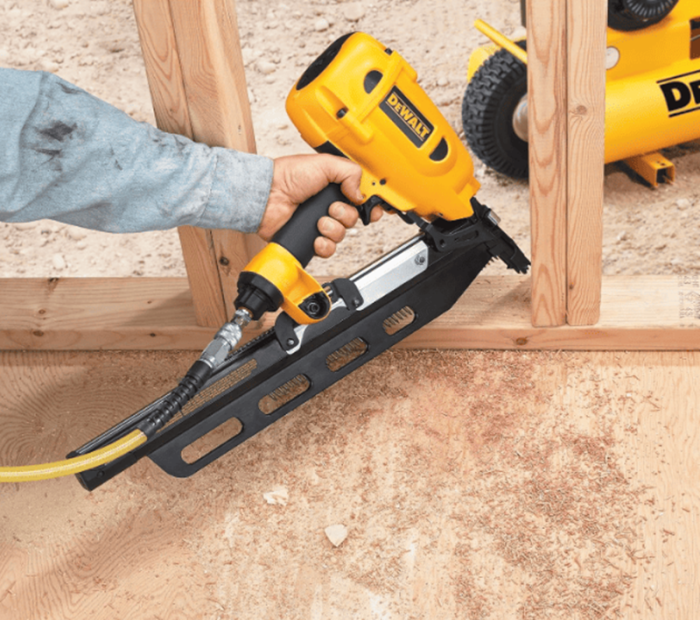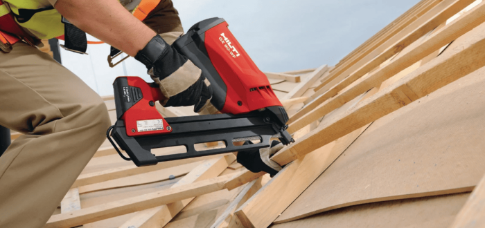 Но если посмотреть как строят дома в США, то можно увидеть всё тех же строителей, вооружённых... молотком. Только вместо обычного молотка сегодня используют гвоздезабивной пистолет (нейлер). Он может быть аккумуляторный, пневматический, газовый и даже пороховой.
