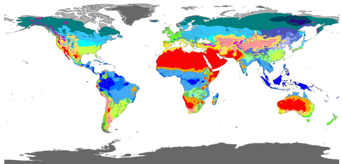 Климатическая карта поясов планеты. В России, странах Скандинавии и Канаде самый распространённый климат – континентальный. В Южном полушарии его нигде нет