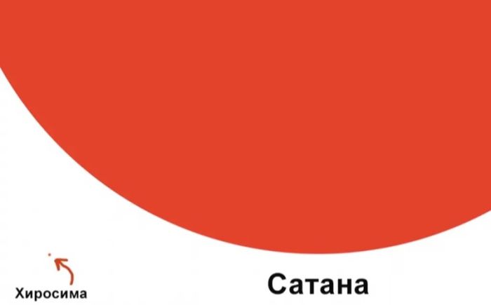 Как видно, Сатану пришлось вынести за пределы кадра, иначе Хиросиму просто не было бы видно.