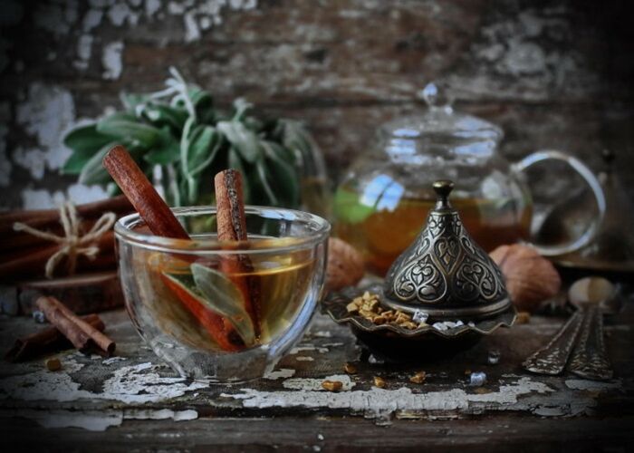 Восточная кухня изобилует специями, которые нередко добавляют в чай. Пряности, такие как кардамон, корица или имбирь, имеют свойства, способствующие улучшению обмена веществ и даже помогает организму лучше справляться с жарой. Таким образом, горячий чай становится не только освежающим, но и полезным напитком.