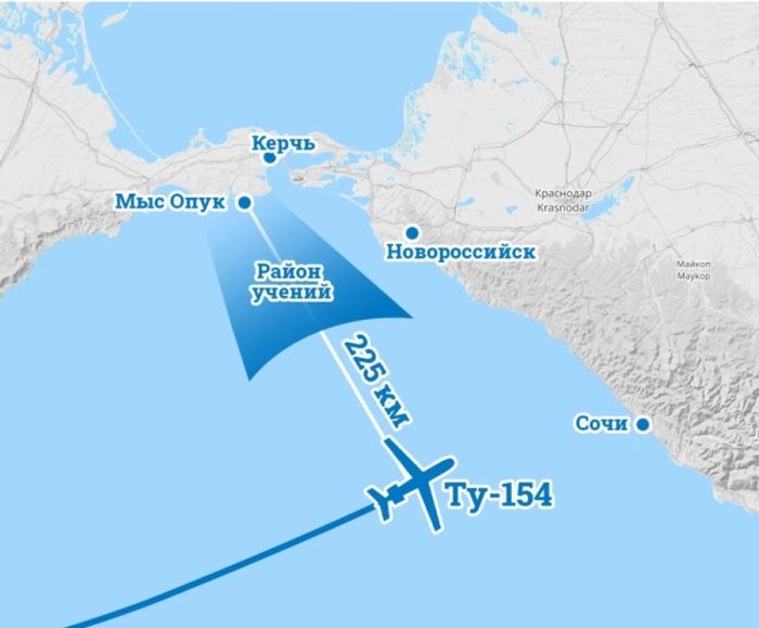 В день трагедии на мысе Опук (восточная часть Крыма) проходили учения украинской армии, в ходе которых дивизион зенитно-ракетной бригады выпустил 23 ракеты разного класса. Один из пусков произошел как раз в 12:41 по Москве. Комплекс С-200 должен был поразить беспилотный самолет-мишень.