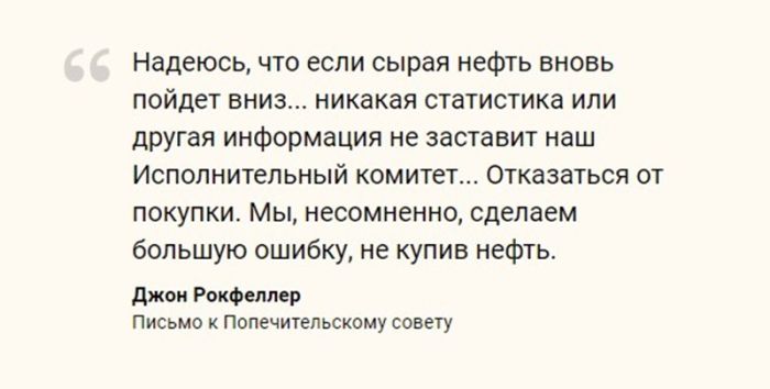 Все в совете интерпретировали текст данного письма следующим образом: "как только цена на нефть упадет вы должны приказать подконтрольным нам компаниям скупать как можно больше нефти".