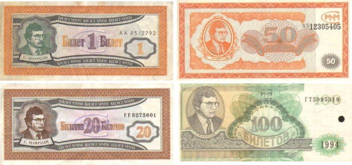 Помимо акций выпускались также билеты МММ, которые не были ценными бумагами даже формально и равнялись 1/100 акции.