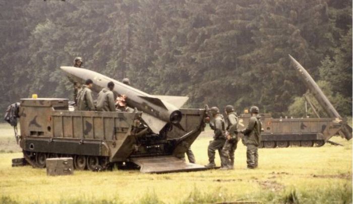 Тактическая ракета «Ланс» служила как основное средство доставки нейтронного боеприпаса на поле боя![]()