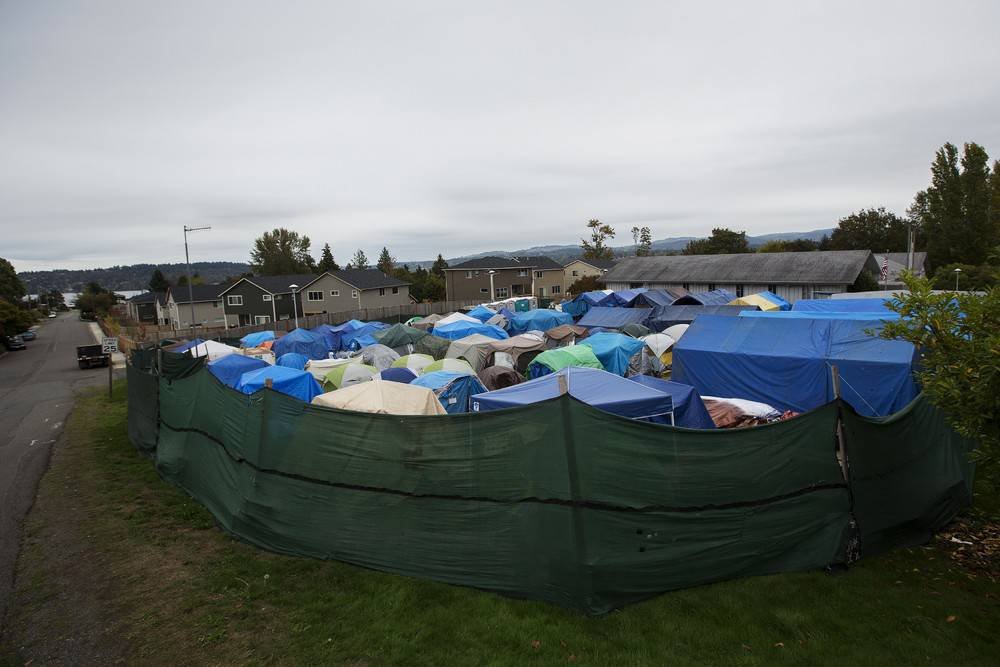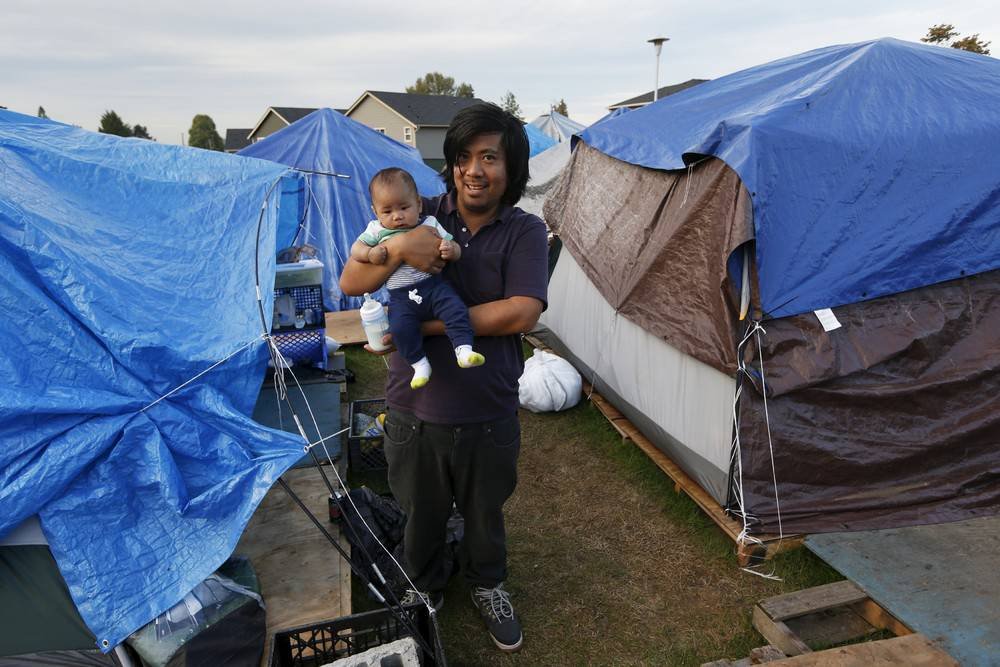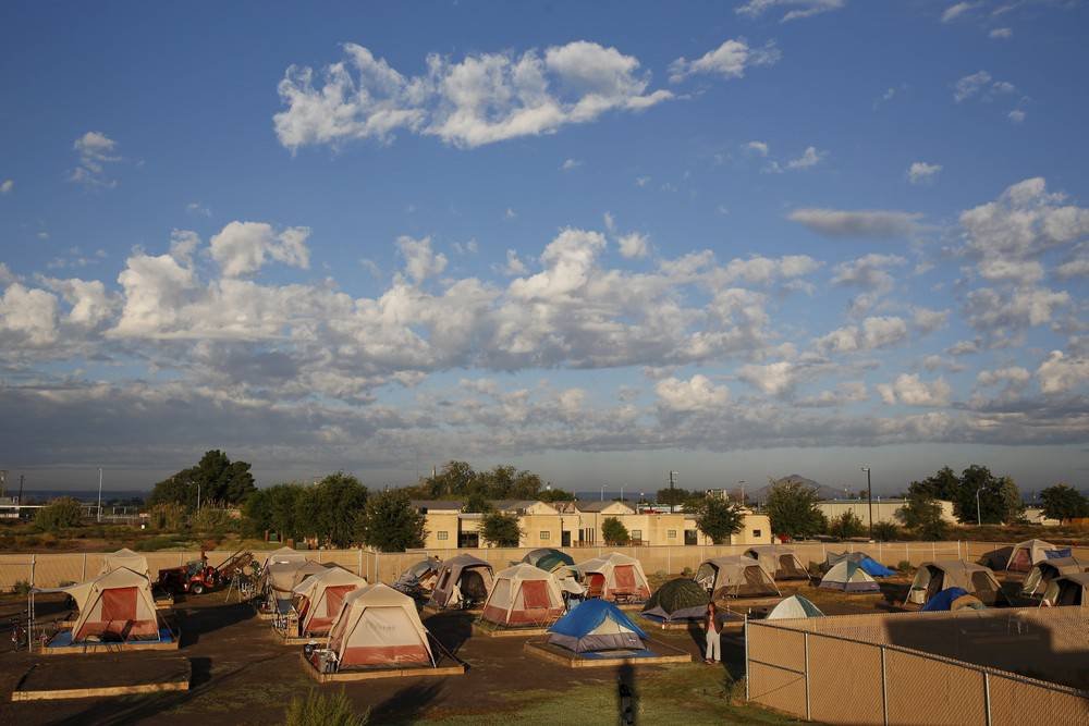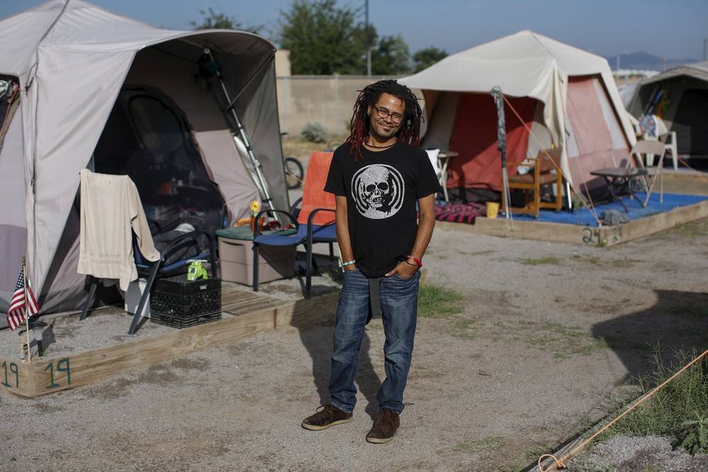 Более 50 человек проживает в палаточном городке для бездомных "Надежда" в Лас-Крусес, Нью-Мексико. Жизнь в таких городках безопасней, чем просто на улице. Однако в последние несколько лет многие города Америки ввели запрет на подобные палаточные городки.