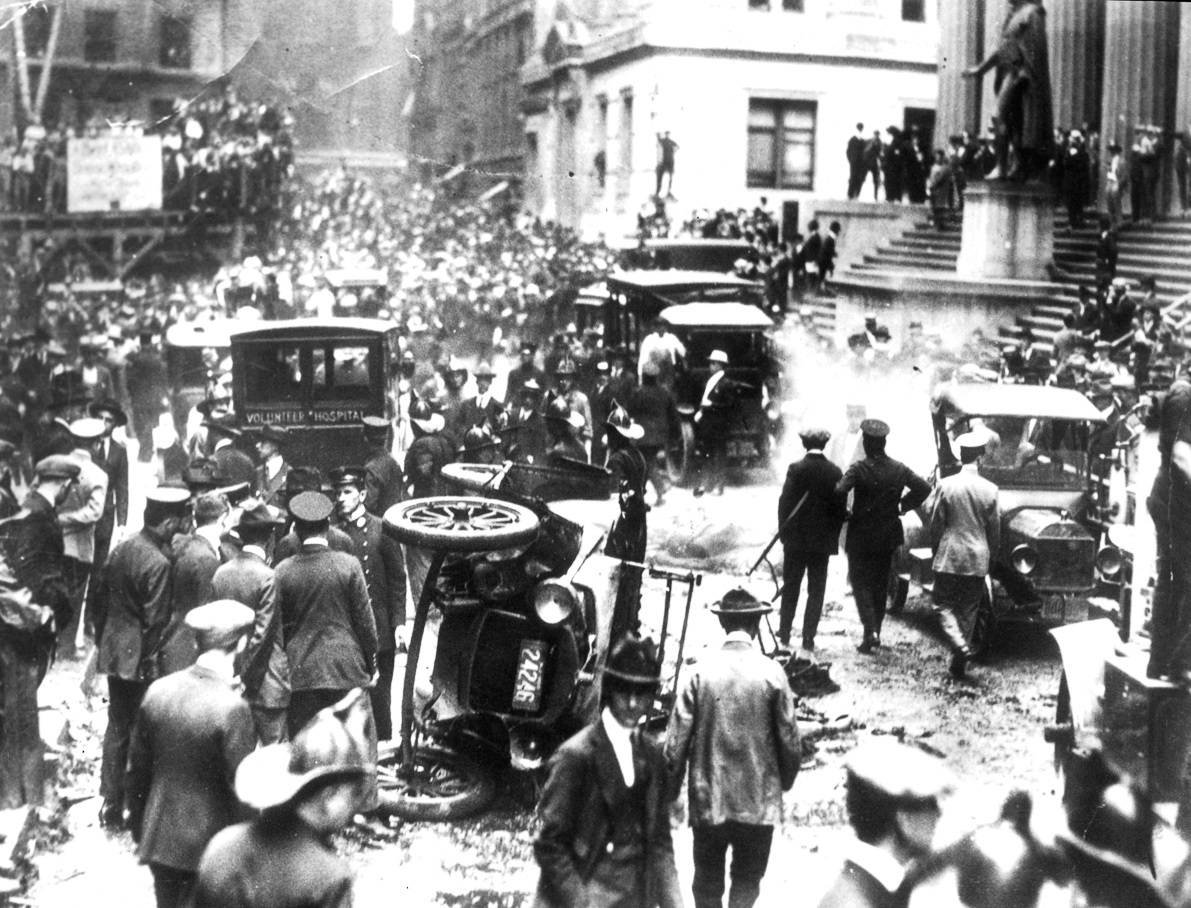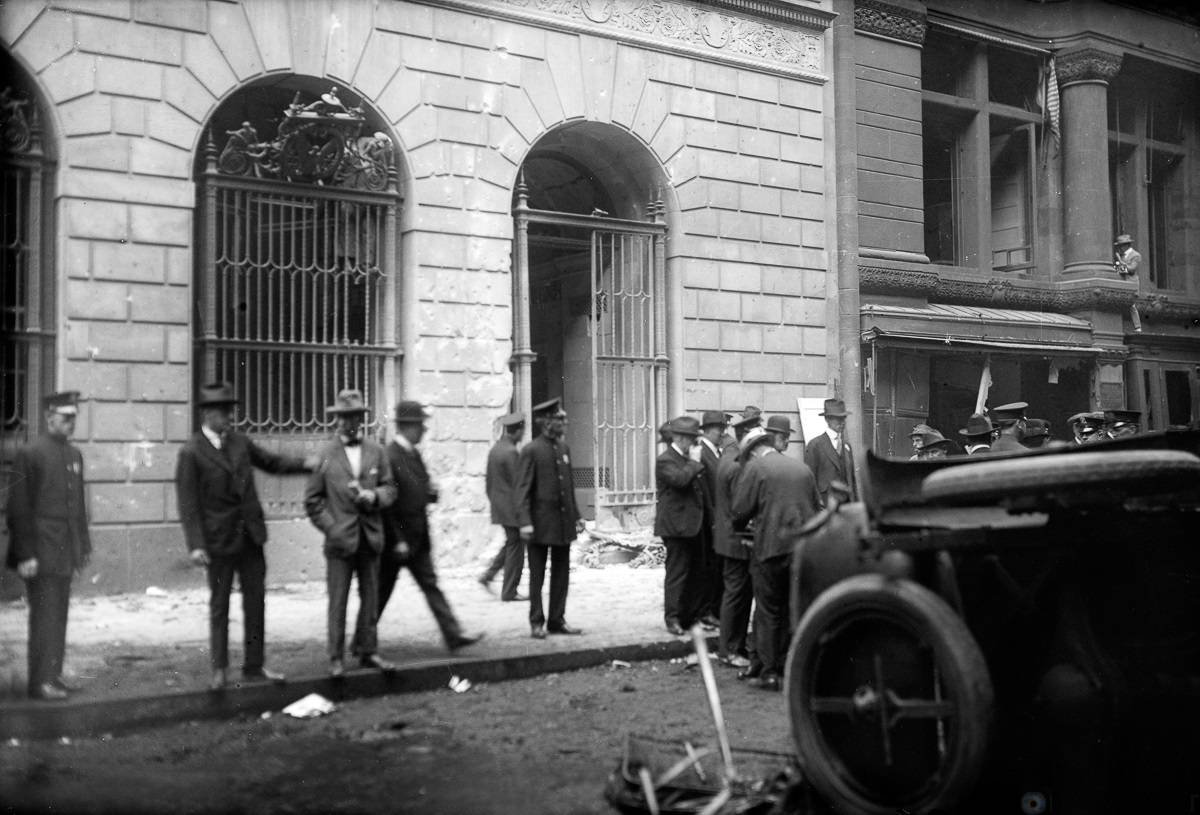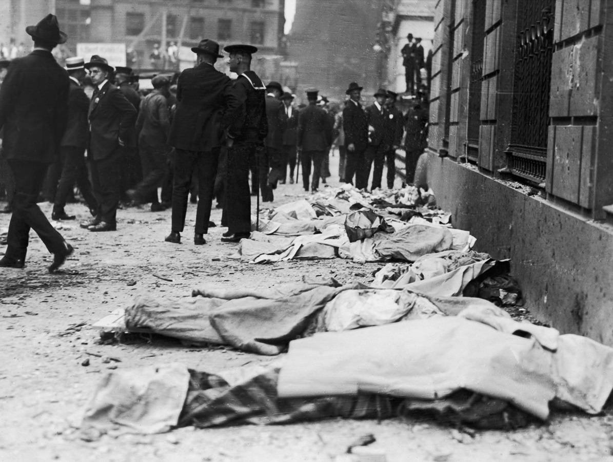 В среду, 16 сентября 1920 года на Уолл-Стрит, прямо напротив штаб-квартиры банка J. P. Morgan взорвалась бомба. От взрыва погибли 40 человек, при этом ни исполнителей, ни организаторов теракта так и не смогли найти.