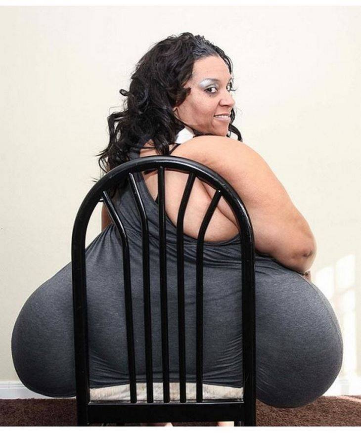 Микель Руффинелли 39 лет. Ее вес составляет 190 кг, а охват бедер равен 244 см. Это официально зарегистрированный мировой рекорд: Микель — обладательница самой большой попы в мире. При этом охват талии пропорционально небольшой — 101 см.