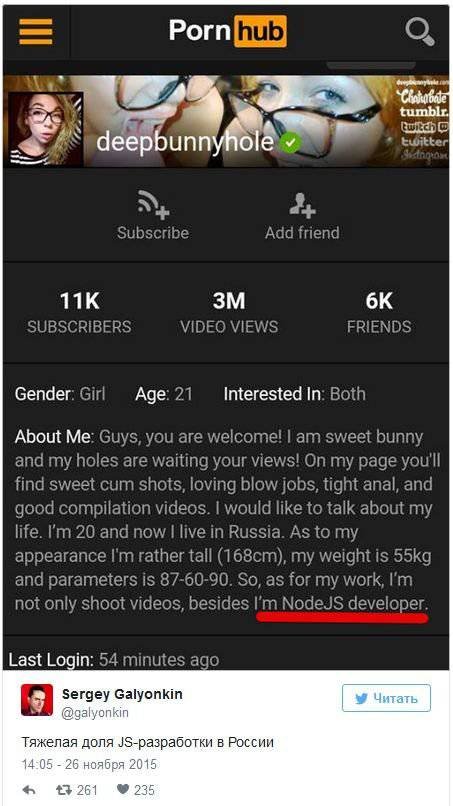 "До этого события я могла по пальцам пересчитать русскоговорящих подписчиков. К тому же, мне поступило огромное количество предложений работы кодером NodeJS и несколько предложений от фотографов. Если честно, я совсем не ожидала подобного и пока не знаю, что со всем этим делать" - рассказывает начинающая порноактриса.