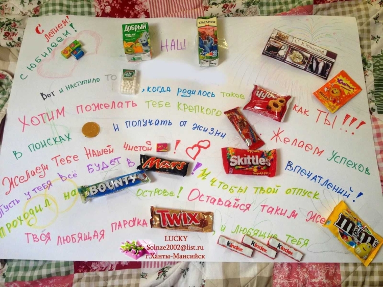 Подарок конфеты с пожеланиями