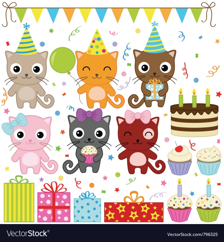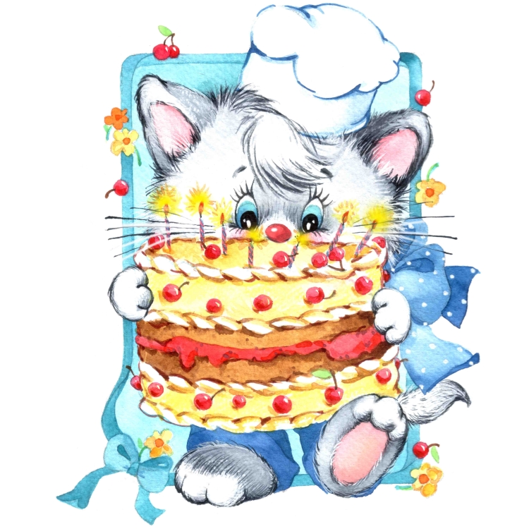 Кот день рождения рисунок