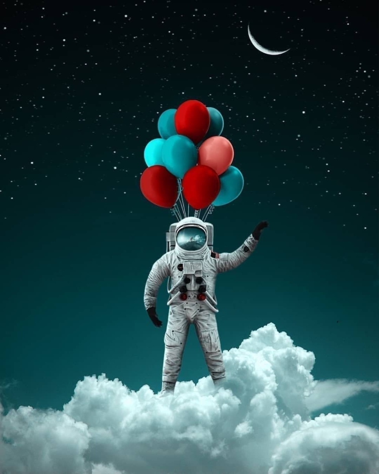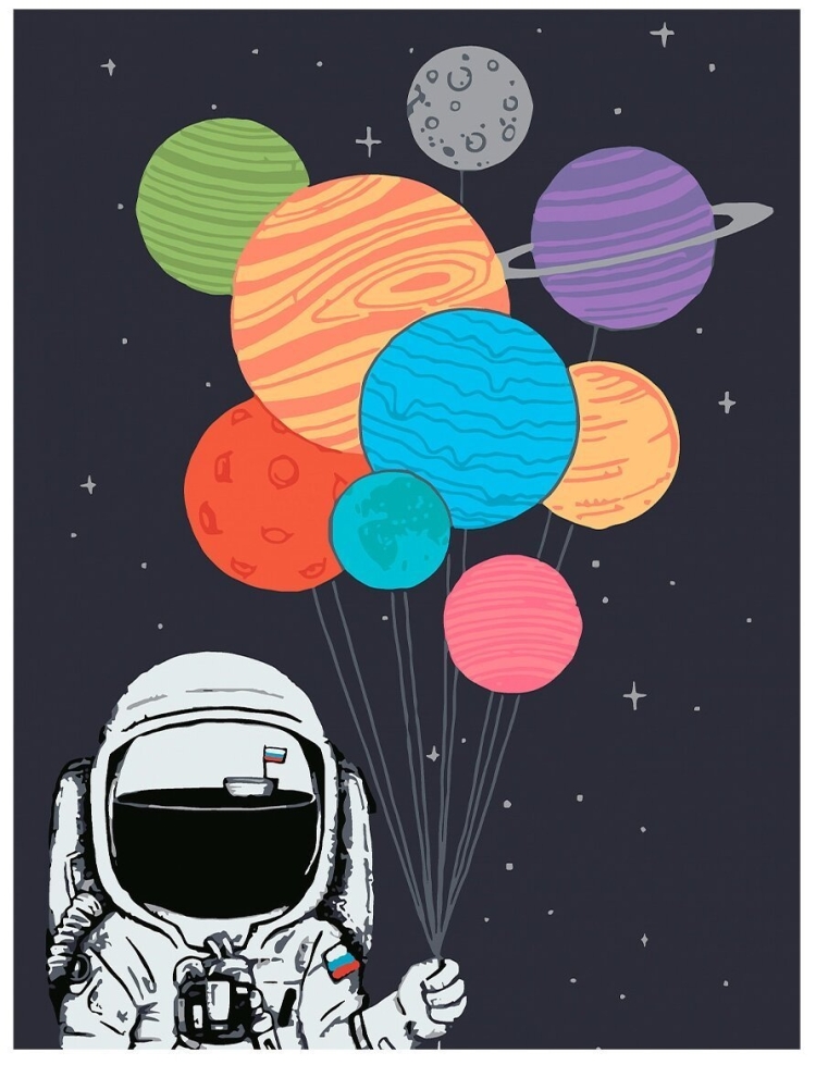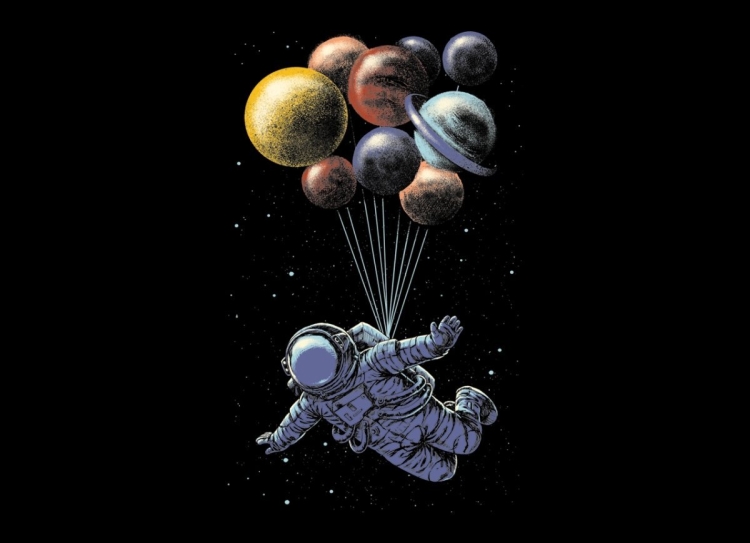 Космонавт с шариками планетами