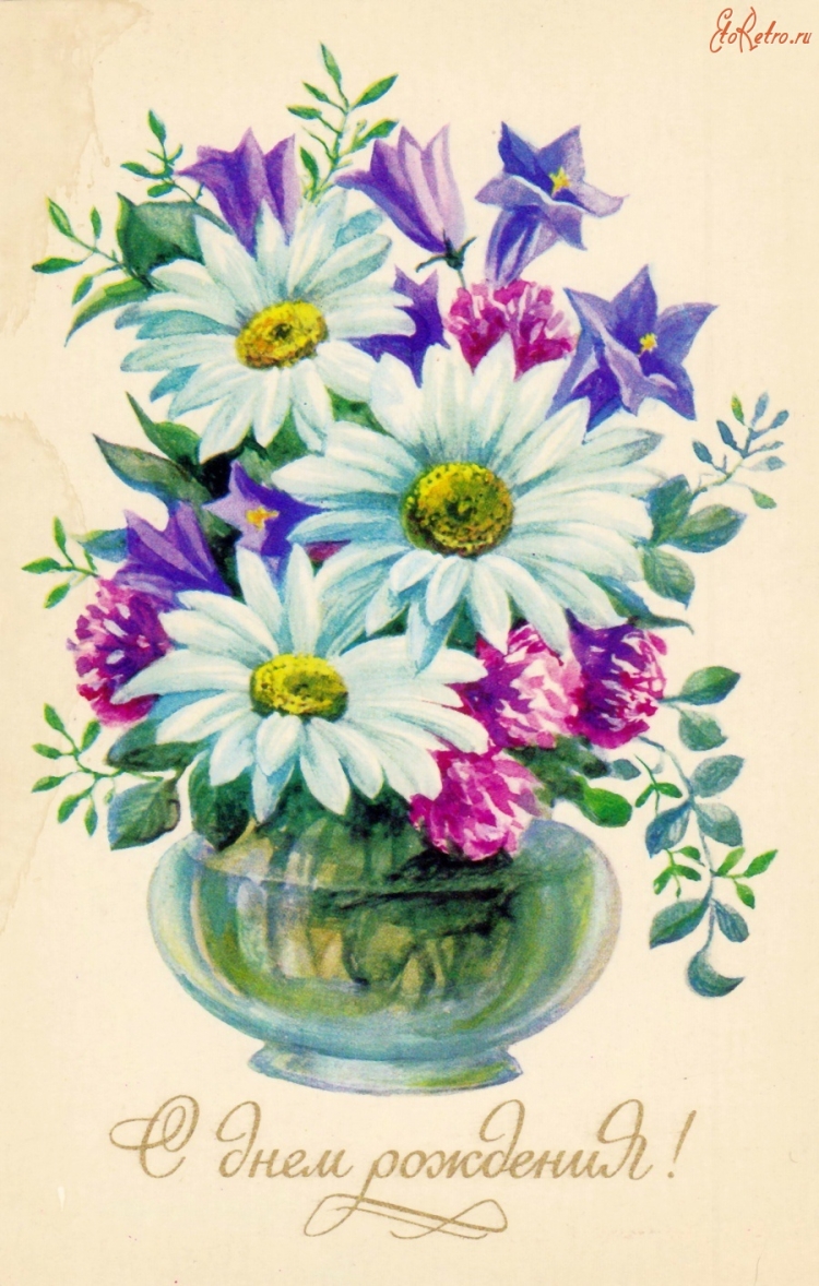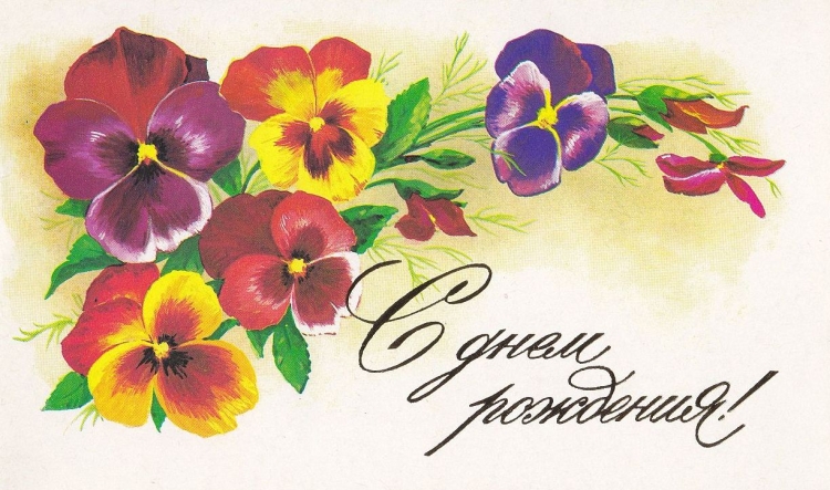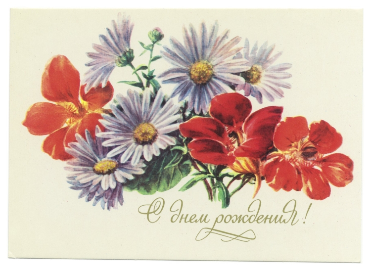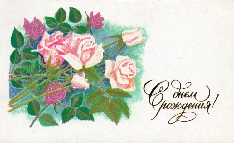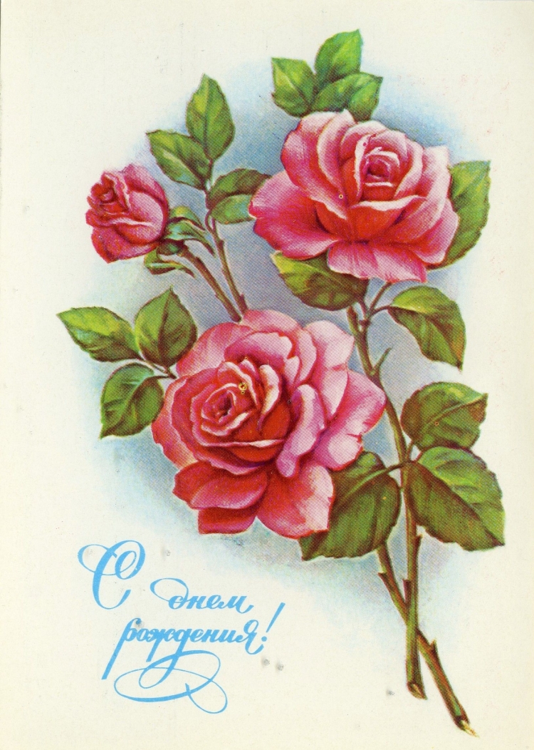 С днём рождения советские открытки цветы