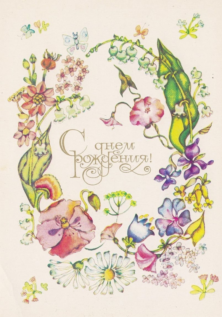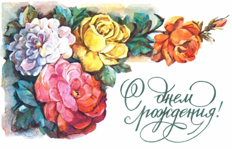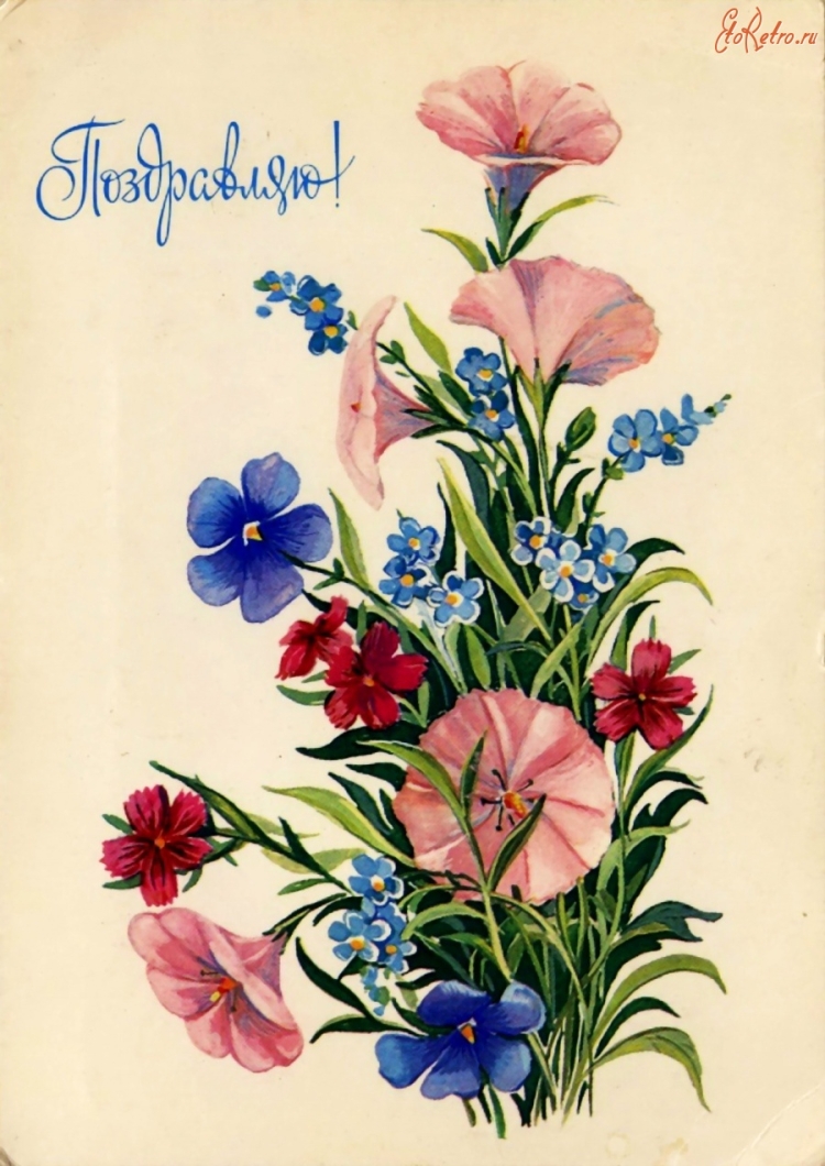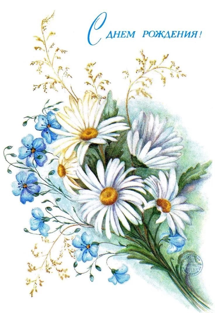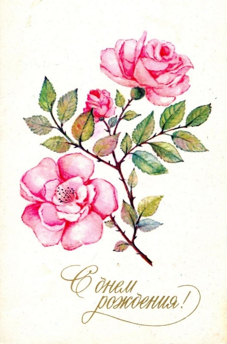 С днём рождения советские открытки цветы