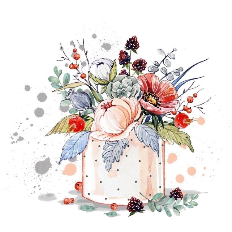 Акварельные цветы в вазе