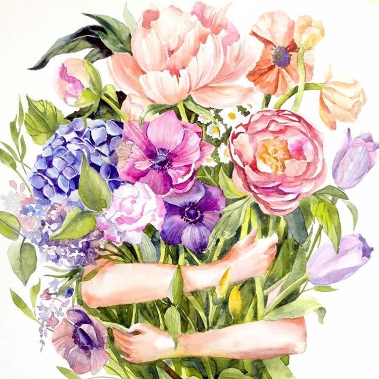 Акварельные цветы букет