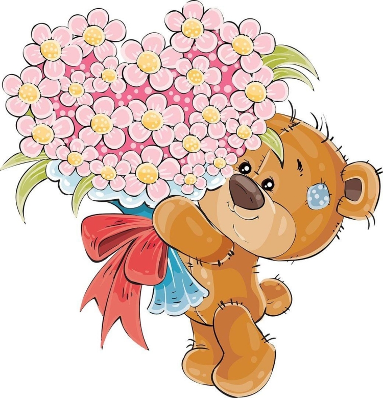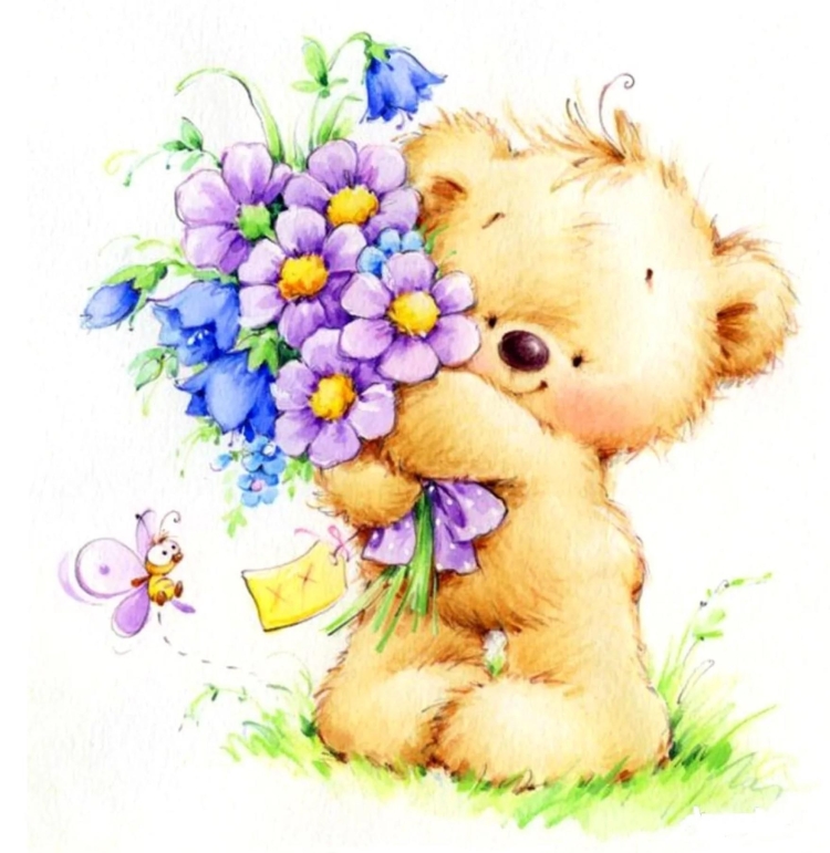 Мишка с цветами картинки