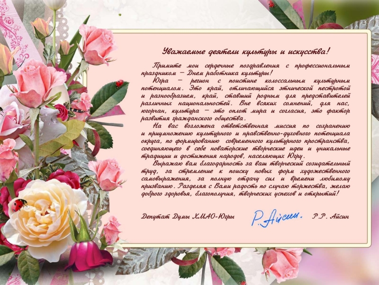Поздравление с юбилеем работника культуры
