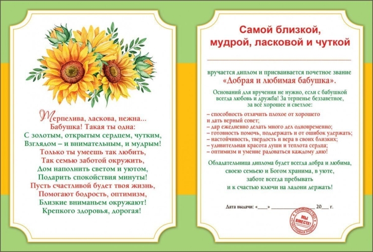 Диплом бабушке