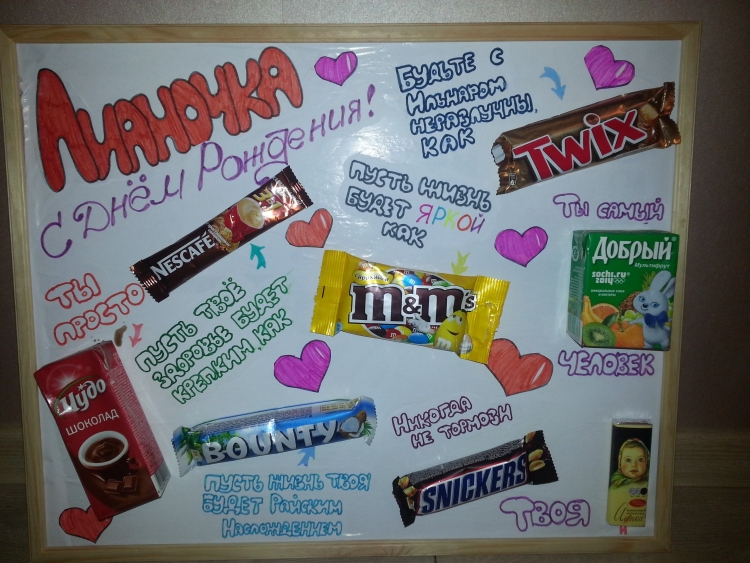 Плакат подруге на др с шоколадками